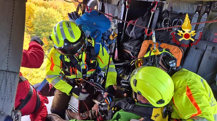 Elicottero dei vigili del fuoco recupera un escursionista tedesco di 65 anni alla Grotta del Gelo