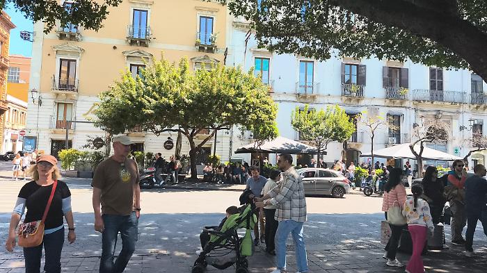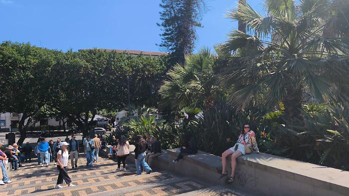 Clima simile alla Villa Bellini, dove la presenza maggiore sono famiglie con bambini. Giuseppe è con o suoi due figli, e dice: «Stiamo al viale Mario Rapisardi, e siamo venuti fin qui a piedi, anche per evitare il traffico della per la partita del Catania». Dopo comunque ci sarà anche per lui e famiglia il momento per fare "arrusti e mangia", ma in pieno centro. «Un amico ha una casa con terrazza qua a due passi, ne approfittiamo per fare qualcosa di diverso. Solitamente ci piace andare in montagna. Ma la città è meravigliosa oggi, perché mettersi in macchina per ore?».