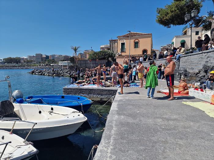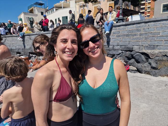 Chi invece ha deciso di fare in tuffo, ma a San Giovanni Li Cuti, è Alessandro 76 anni. «Ma ne dimostro, mi dicono, molti meno», sorride. In effetti il fisico è quello allenato di chi tiene alla sua salute. «Ormai da 26 anni vengo qui a nuotare quasi ogni giorno. E oggi con questa giornata non potevo fare altrimenti».