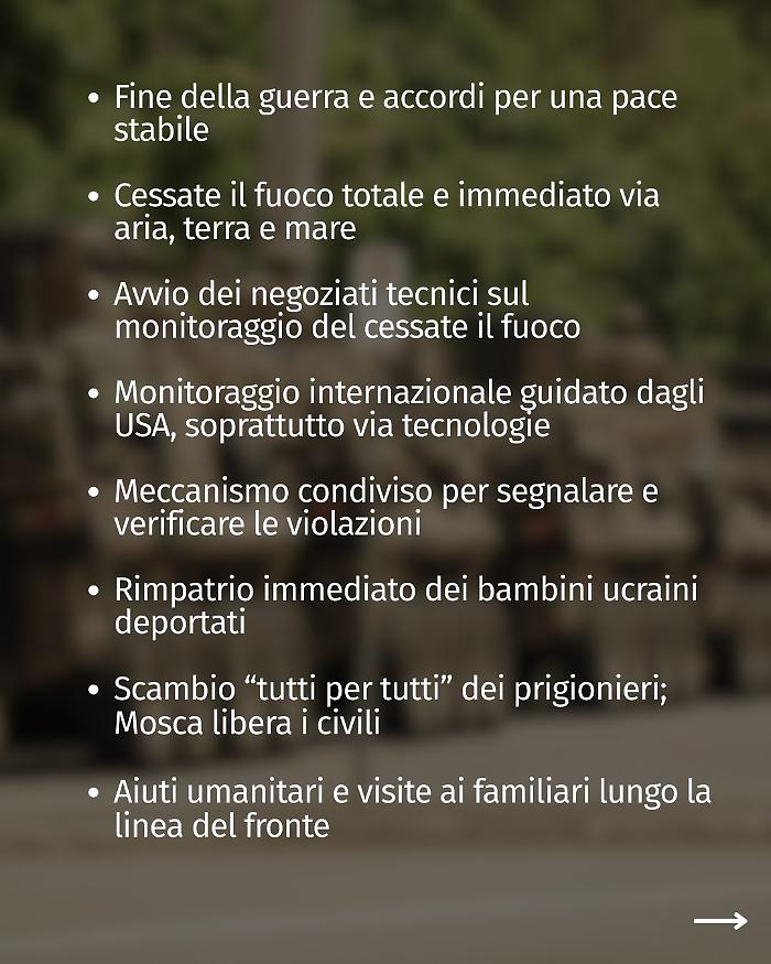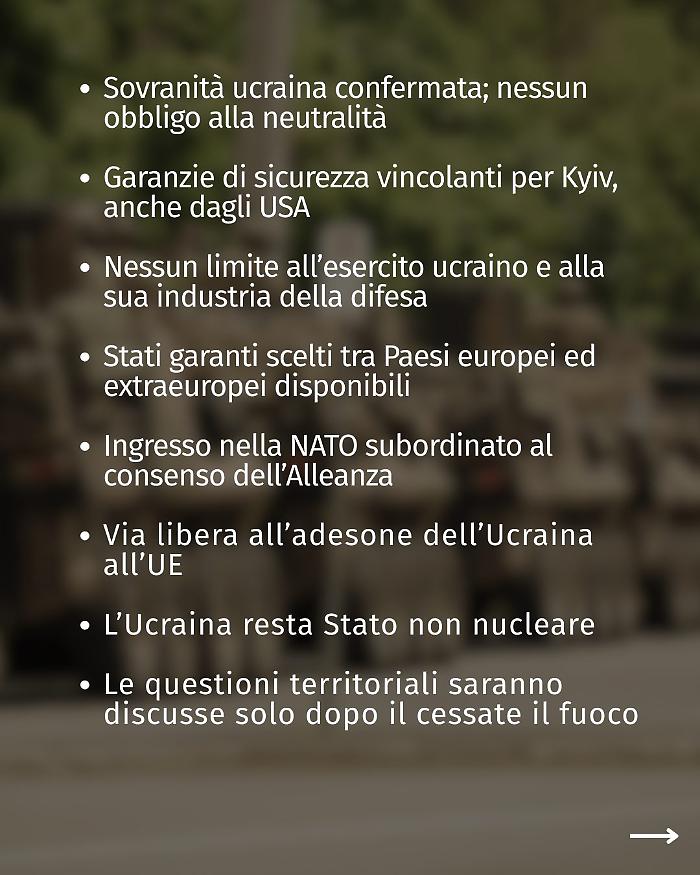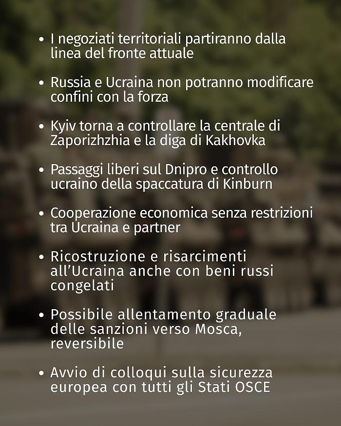 Respinte le richieste sui territori non occupati a est, chieste garanzie sulla clausola di sicurezza e l'uso degli asset russi congelati per la ricostruzione.