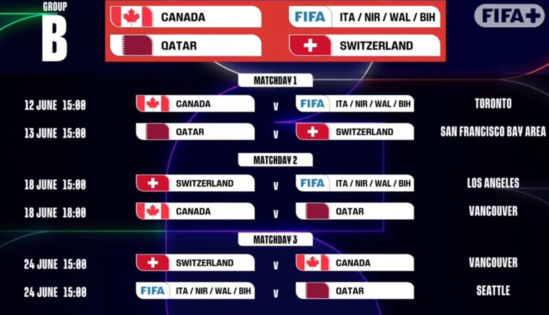 Per poter accedere al torneo, gli azzurri dovranno superare i playoff che si terranno a marzo 2026. Se l’Italia riuscirà nell’impresa, giocherà il suo match d’esordio il 12 giugno a Toronto, affrontando il Canada, squadra ospitante e dunque avversario di grande peso emotivo e tattico. L’inizio della partita è fissato per le 15 (le 21 in Italia), e rappresenterà un banco di prova importante per gli azzurri in questa prima fase.