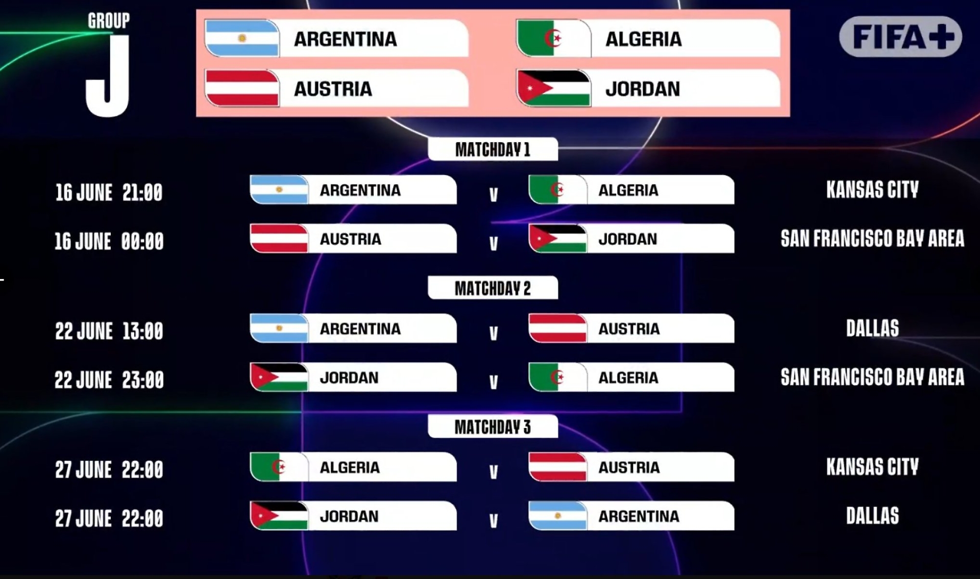 L'Argentina campione del mondo nel girone J esordirà invece il 16 giugno alle ore 21 a Kansas City contro l'Algeria.