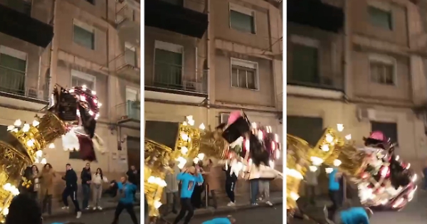 Paura a Paternò, la varetta dei panettieri si spezza durante la processione di Santa Barbara: il video
