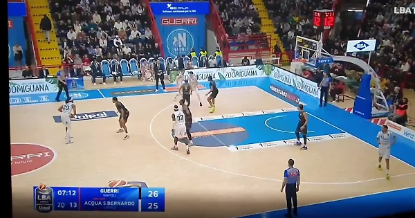 L’incontro, scattato alle 18:30, riprenderà quasi un’ora più tardi, a canestro sostituito. Alla fine stravince Napoli